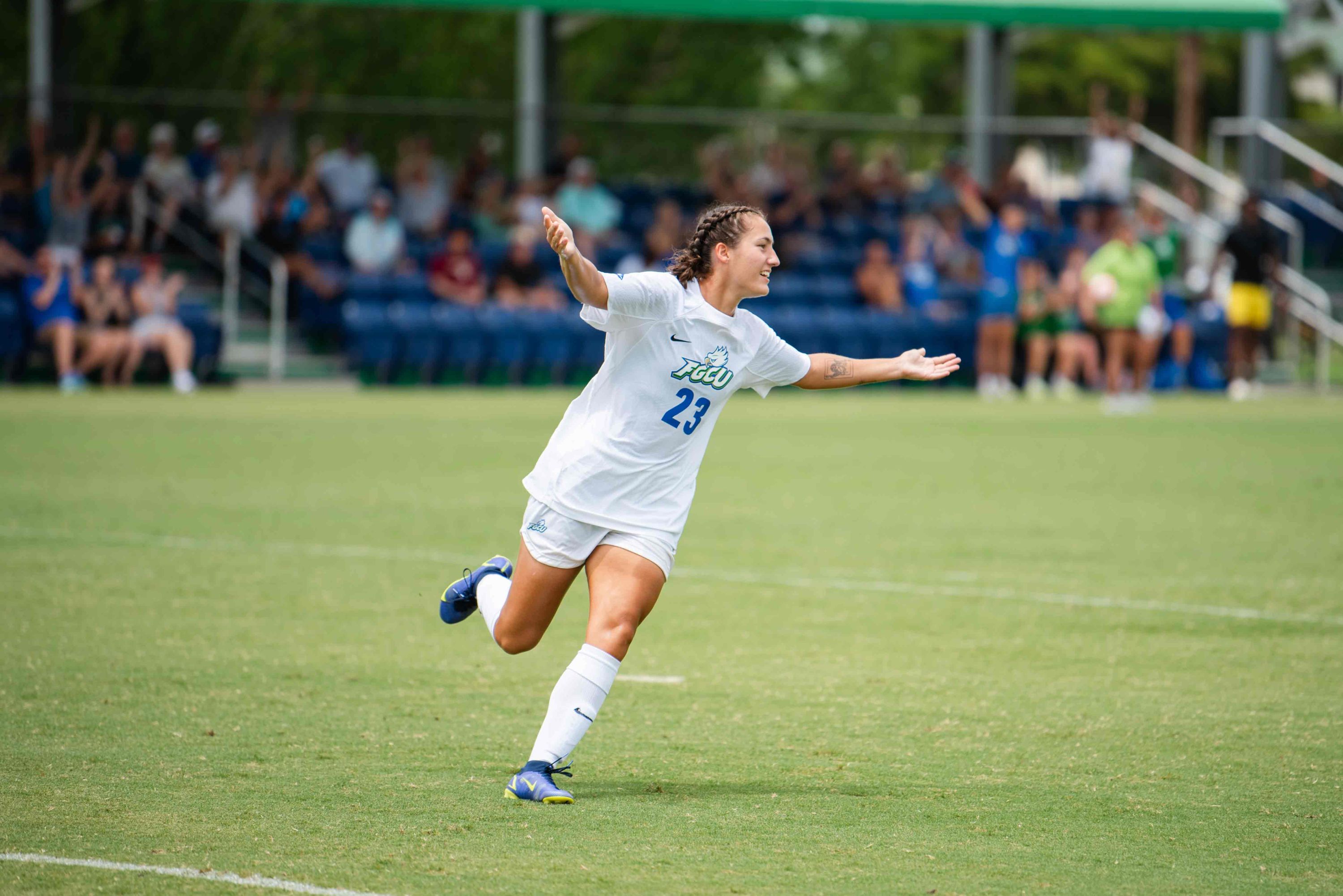 Angefangen habe ich an einem Community College in Kansas City, wo ich anderthalb Jahre gespielt habe. Für mich war das ein guter Start in den USA, weil ich viel spielen durfte und nicht nur auf der Bank saß. Zweimal wurde ich sogar zum MVP („Most Valuable Player of the Year“) gekürt – das war eine große Ehre. Im ersten Jahr fuhren wir zum National Tournament in Georgia und landeten dort unter den zwölf besten College-Teams des Landes. Im Sommer 2022 wechselte ich dann an die Florida Gulf Coast University, eine größere Universität mit einem Team, das in der NCAA D1 spielt – der höchsten Liga im College-Sport.